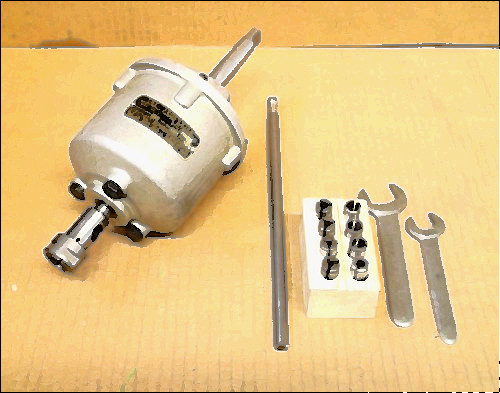 I bought this tapping head new and have used less than six times. It's still like new. Included are 3/8, 5/16, 1/4, #10 and #6 collets.