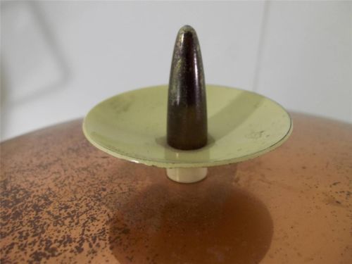 | Seller Notes | “Item is in good shape and condition. There are light scratches and chippings on the paint. The copper needs to be cleaned as it has very light rust from storage. Handles are firmly attached and the wheat pattern is clear and beautiful.” |