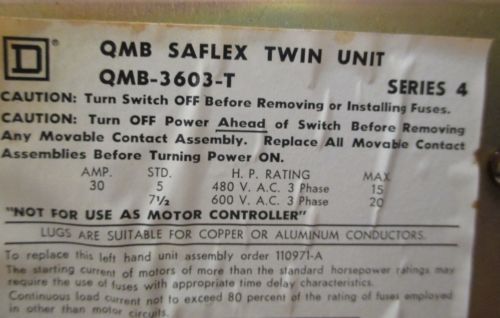 SQUARE D QMB QMB3610 T16 100AMP 600V FUSED PANELBOARD SWITCH