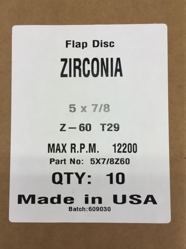 QTY:1 T29 Premium Zirconia Flap Disc 5" x 7/8" 60 grit MADE IN USA