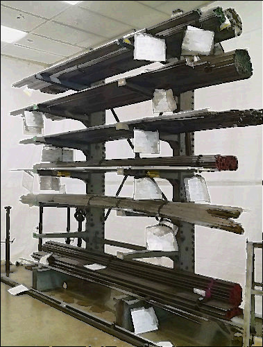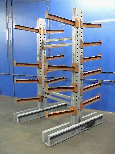 YOU ARE BIDDING ON ONE TREE OF STRUCTURAL STYLE HEAVY DUTY CANTILEVER RACKING. GREAT FOR STORING LUMBER , SHEET STOCK , STEEL , PIPE AND ANYTHING ELSE LONG. EACH TREE COMES WITH A 10' TOWER , 48" BASE , 3-48" ARMS AND THE 4' SUPPORTS THAT TIE EACH TREE TOGETHER THIS IS A 5.5" X 8.5" HEAVY DUTY I BEAM STRUCTURAL TOWER.