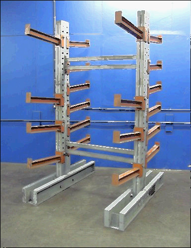 You are bidding on 1 Bay of Single Sided Structural Cantilever Rack 16' Tall x 6' Wide x 4' Deep PARTS BREAKDOWN: 2 each 16' Structural Towers 6,500# cap per tower, 8 ea. 48" x 3 " face arms 1,500# capacity per arm. 2 each 4' I-Beam bases.