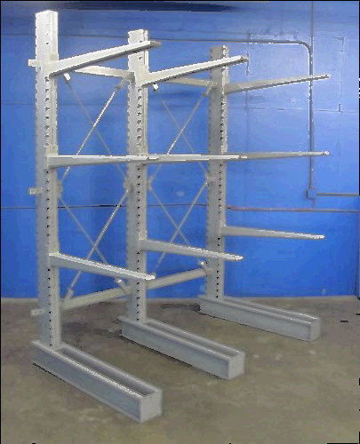 YOU ARE BIDDING ON ONE SET OF THREE TREES OF JARKE BRAND HEAVY DUTY CANTILEVER RACKING. THIS IS SINGLE SIDE CANTILEVER WITH A 66" LONG BASE , NOT DOUBLE SIDED. GREAT FOR STORING LONG MATERIAL WITH RACKS AGAINST A WALL.