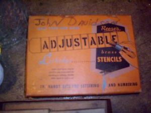 REESE'S ADJUSTABLE BRASS LETTER STENCIL SET WITH BRUSH ONE INCH LETTERS