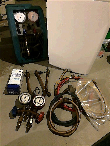 Thermal Engineering: CAP-CHECK #5101 Complete with Chaser Kit, For Servicing Cap-Tube Systems View of complete kit We replaced the pressure hose, as the original one was starting to crumble, we also replaced the gauge's warped plastic faceplate with glass. This model is still available, follow this link. From a small town refrigeration repair serviceman's estate, we didn't have any refrigeration oil to put in it, so we weren't able to test it further.