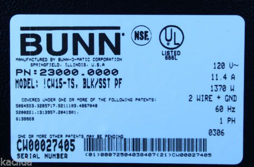 Bunn International Commercial Airpot Brewers CWA-APS 23001.0024 230volts