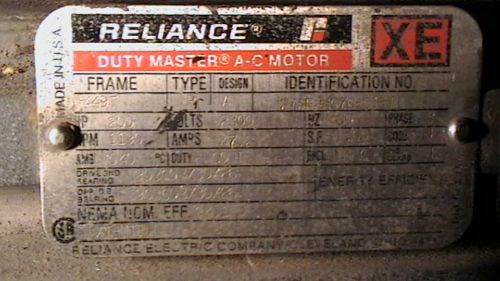 RELIANCE ELECTRIC 3-PHASE AC MOTOR 20 HP MODEL P25G372E-G13-TL/MN8333 (2 AVAIL)