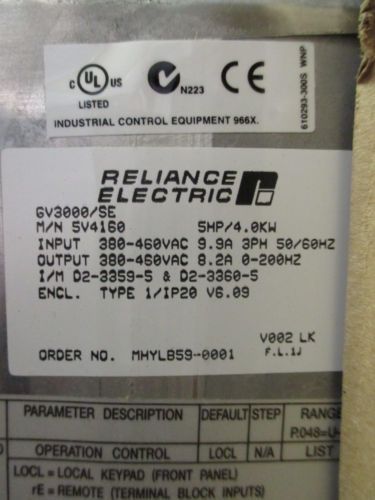 RELIANCE ELECTRIC GP-2000 5HP 6.6kVA A-C VS DRIVE