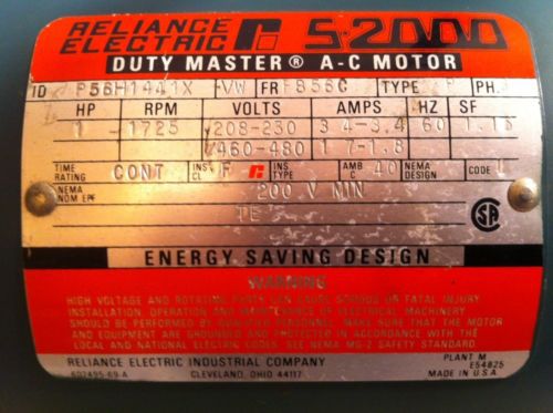 Reliance Duty Master A-C Motor,HP 2.5-3.0, ID#B79C2898M-GF, RPM 1425-1725