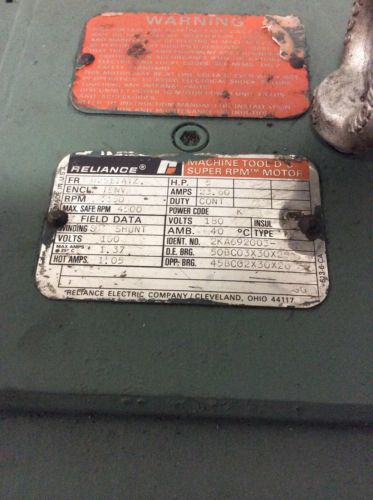 Reliance Frame B2111ATCZ, 5 HP and 3500 RPM DC Motor