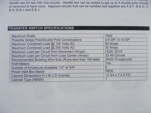 GENTRAN GENERATOR TRANSFER SWITCH 20-AMP 6 CIRCUIT 125/250 VOLT GROUNDING PLUG