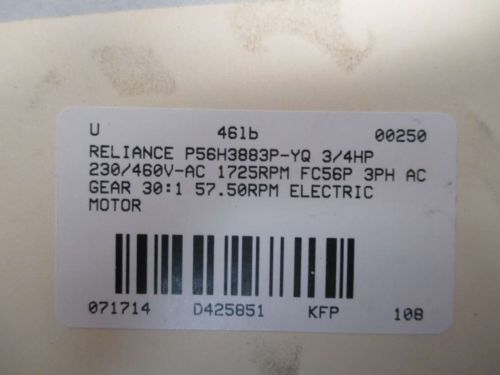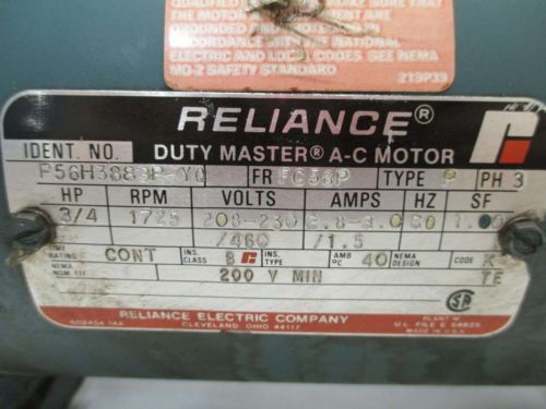 NEW RELIANCE P56X1529R DUTY MASTER AC 3/4HP 230/460V-AC FM56C MOTOR D330302