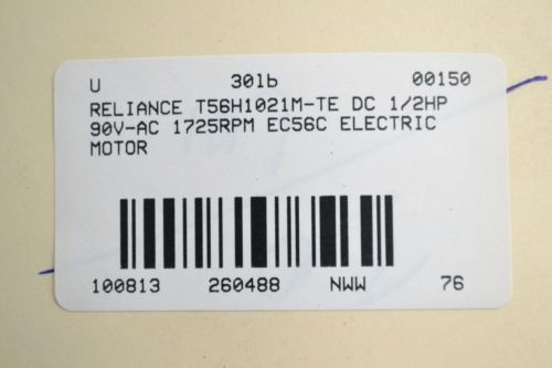 RELIANCE ELECTRIC P56H1301H AC MOTOR, 3/4 HP, 208-230/46 VAC, 1725 RPM
