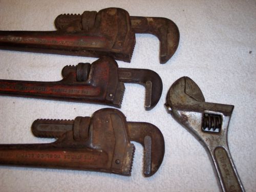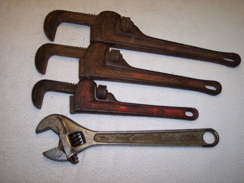 Lot of 4 Vintage Ridgid Pipe Wrenches 10" 14" 18" and 14" Offset USA