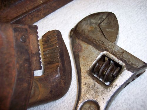 pipe wrenches used (lot of 8) some vintage trimo-dunlap-stilson-walworth + more