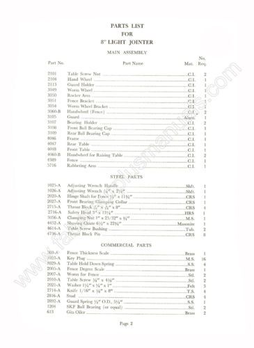 Rockwell / Delta / Crescent 8" Wood Jointer Service Manual *850