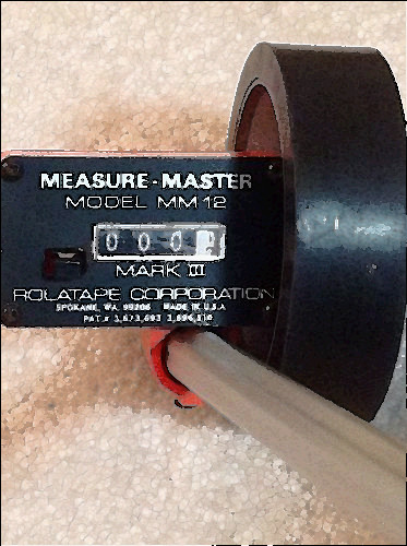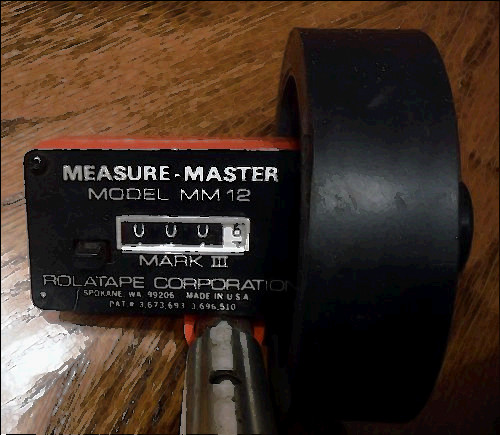 This is a model 200 Rolatape Wheel Tape Measure Traffic Model for Walking Speed. This light, versatile measuring wheel enables one man to record accurate measurements automatically as he walks. Ideal for measuring line to line, wall to wall, vertically, overhead or around curves.