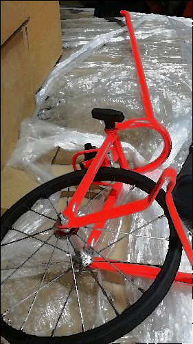 Rolatape Measuring Wheel with Folding Handle Model 400 Orange Steel Frame Approximately 28" folded. Used, works, paint is chipped and peeling in spots, rubber on wheel is weather checked, counter window is dirty inside, needs disassembled and cleaned. Item shows wear and use.