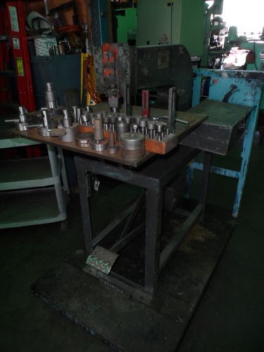 WHITNEY JENSEN MDL 58 5 TON CAPACITY KICK PRESS W/ TOOLING Description: Up for sale is a Whiney Jensen Model 58 Kickpress. This kick press is in good working and operating condition. It features a 5 ton capacity, 18” throat, and 1” stroke. The table measures 20” by 20”, and the press is manually operated by foot. This item comes with a large array of tooling including, but not limited to: (32) complete punch & die sets, (4) complete radius punch & die sets, (1) complete corner punch & die set w/ (4) extra punches. For more information please call Gary at 510-453-0513. SPECIFICATIONS MANUFACTURER WHITNEY JENSEN MODEL 58 SERIAL 1425662 CAPACITY 5 TON STROKE 1” THROAT 18” TABLE 20” X 20” FOR MORE INFORMATION PLEASE CALL GARY AT (510) 453-0513 FOR MORE INFORMATION PLEASE CALL GARY ARAGON AT 510 453-0513 LOCATED AT 601 ALADDIN AVENUE, SAN LEANDRO, CALIFORNIA 94577 ********TERMS AND CONDITIONS******** SALES Your bid is a contract. Place a bid only if you are serious about buying the item. If you are the winning bidder, you will enter into a legally binding contract to purchase the item. If the seller is unable to establish contact with the winning bidder within three days of the end of the auction, or if payment isn’t received within three days of the invoice date, item may be offered to the next highest bidder or re-listed at the sellers’ discretion. Please do NOT pay until you are invoiced!! PAYMENT TERMS Gary S. Aragon, LLC accepts ATM and these major credit cards: Visa, MasterCard, & Discover. Buyers may call us at 510 453-0513 with credit card information. You can also use PayPal. PayPal payments should be sent to garysaragon (at) comcast.net. CALIFORNIA STATE SALES TAX APPLIES TO ALL STATE RESIDENTS… unless we receive a valid resale card. EBAY TERMS eBay charges Gary S. Aragon, LLC a service charge for each item we list. If a customer cannot or does not pay for an eBay purchase in the specified amount of time, Gary S. Aragon, LLC will file a non-paying bidder alert with eBay. Gary S. Aragon LLC will hold the non-paying bidder responsible for the eBay fees and commissions occurred by us. SHIPPING Buyer is responsible for all shipping costs and arranging shipping for bigger/heavier items. Most of our items are shipped from San Leandro, California 94577. UPS only handles up to a maximum of 150 lbs., over that weight will require the services of a freight company. Please inquire about the freight/shipping charges before you bid or purchase an item. We ship from a UPS store; therefore we do not get shipping charges online. We do not mark up any UPS cost, we only charge an additional handling fee of $5.00. Wood crating and palletizing charges will be determined according to the size of the item. Palletizing & crating charges usually range from $25.00 up. Call Gary for additional information: 510 453-0513 If free shipping is stated on the Ad it is only available for delivery to a business with a forklift; if a forklift is not available at your location please contact so that we may make arrangements for a lift gate. Any extra delivery services. Free shipping is only available to those within shipping/freight routes; any extra charges for out of area deliveries will be billed to the customer. RETURN AND WARRANTY POLICY Gary S. Aragon offers a money-back guarantee within 14 days of purchase on all eBay items with the exception of items which are listed in the “As Is” or “As Shown” condition. These items do not carry our warranty. Any return shipping or freight charges are the responsibility of the buyer. Before shipping, all returns must be authorized by Gary S. Aragon, LLC. Our normal Return Policy does not apply to international shipments. International bidders are encouraged to personally inspect or have a representative inspect the merchandise. STORAGE FEES The following is the policy of Gary S. Aragon LLC pertaining to additional costs that will be incurred due to delayed pickup or shipment or purchased goods. We regret that this policy must be put into place. It is required due to limited storage available at our facility. Gary S. Aragon’s policy is that any items that have been paid for but have not been picked up or shipped within fourteen (14) days of the sale date, due to a fault of the buyer, will be charged a daily storage fee as follows: The fee for small items that are less than 20 pounds will be charged at the rate of ten dollars ($10.00) per day. The fee for larger items more than 20 pounds will be charged at the rate of 20 dollars ($20.00) per day. The buyer will forfeit the item and any payments made when these fees reach either the sale price of the item or a time period of 90 days for the date of the sale, whichever occurs first. No money will be returned for forfeited items. Items are subject to re-listing immediately upon forfeiture. For items that have incurred storage fees, electronic payment of the fees due or cash will be required for the item to be shipped or released for pick-up. If you have a reason for a delayed pickup, please contact us in advance to get an estimate of the total additional cost. DISCLAIMER Other than what’s displayed in the images accompanying this listing, or mentioned in the description above, there are no manuals, instructions, additional parts or accessories. Unless otherwise stated in the description, the images show the actual, or an accurate representation of the item for sale. All images are photographed by us and are the exclusive property of Gary S. Aragon, LLC. The “description” is written to the best of our knowledge, but is NOT guaranteed to be 100% accurate. When in doubt, call 510 453-0513 for any additional information. Use of any material in this advertising is prohibited without express written permission from Gary S. Aragon, LLC.