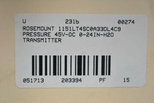 ROSEMOUNT 1151LT5SA0F22DL4C9 PRESSURE 42.4V-DC 0-258IN-H2O TRANSMITTER B203388