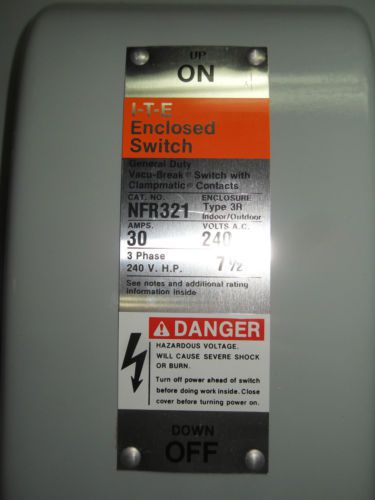 SIEMENS ITE PANELBOARD V2B3211R DISCONNECT 30-30 AMPS 240 VOLTS 3 POLE DUSIBLE