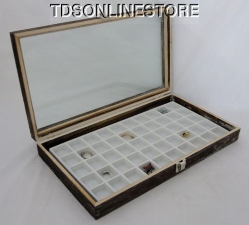 JEWELRY TRAY WITH HINGED GLASS LID W/ WHITE VELVET