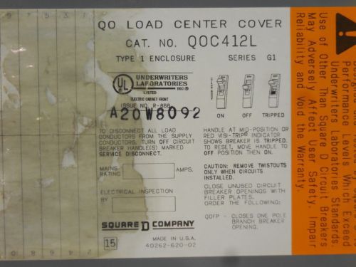 Square D Indoor Load Center Cover, QOC20U100S, 20 Spaces, NEW (IO3)