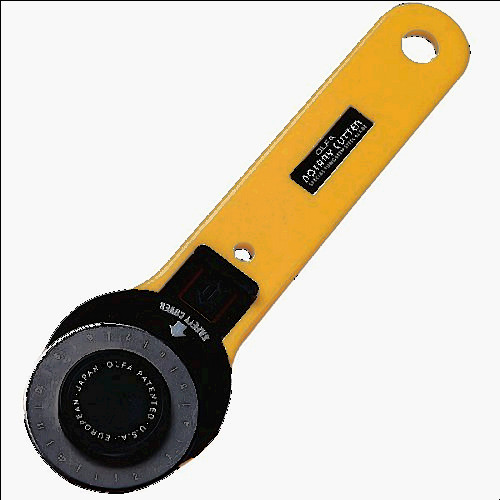For a fantastic value, check this Fiskars 12" rotary paper cutter. It uses a round rotary bladse with a safety holder. The blade is replaceable.