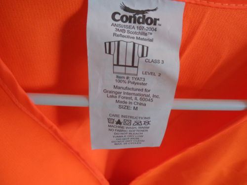 CONDOR 1YAJ8 ORANGE HI VISIBILITY SAFETY VEST CLASS 2 MED/LRG. EXPAND ***NEW***