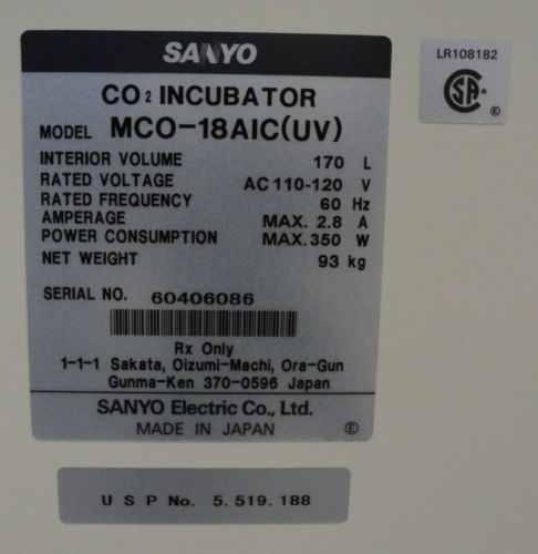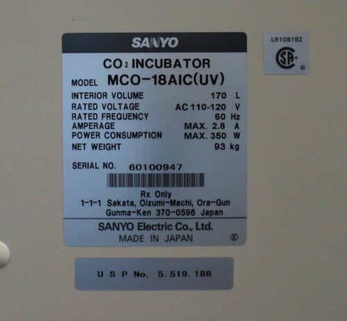 Sanyo CO2 Incubator MCO-17AIC - 164L - Fully Function Tested
