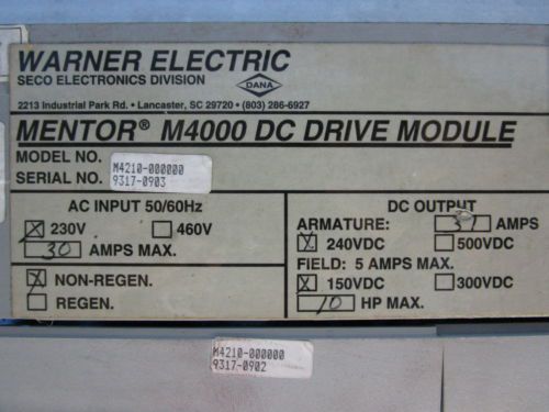 Type/Series | Mentor M4000 DC Drive Module | ||