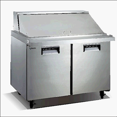 Vortex 2 door, mega top 18 pan salad/sandwich prep table v-48spt-2mt-18