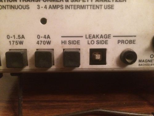 “This item has been plugged in and LED lights up. This is a used system that does not include the probe. One of the push buttons is missing but still functions properly. This also includes the original Manual, and Schematic.” |