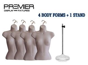 SET OF 4 HANGING FEMALE BODY FORM WAIST LONG PLASTIC MANNEQUIN WITH BASE BLACK