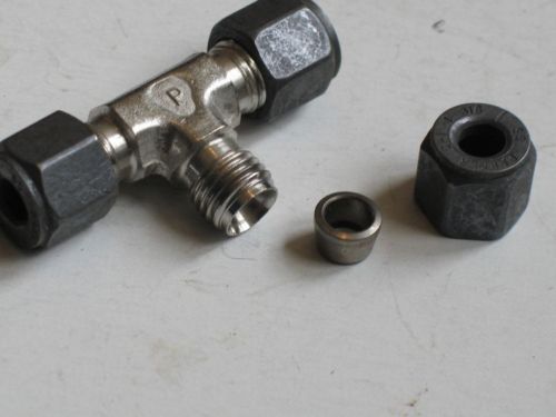 Parker Stainless Steel SS Tubing Fitting 1/4" Tube x 3/8" NPT Male Branch Tee