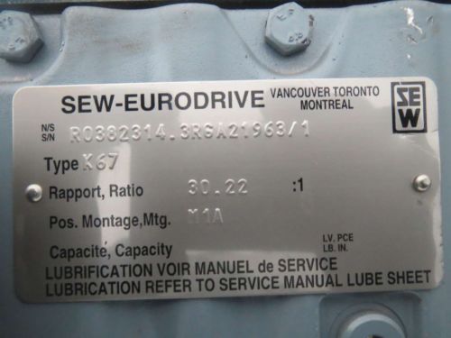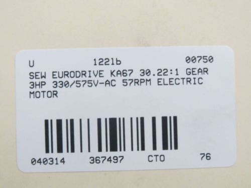 SEW EURODRIVE KA67 44.32:1 GEAR 3HP 330/575V-AC 1720RPM ELECTRIC MOTOR B367487