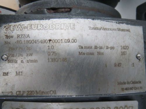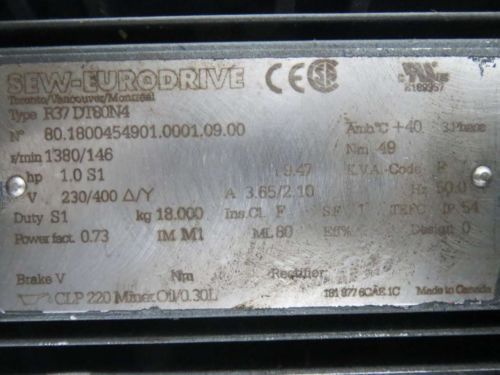 SEW EURODRIVE SA57DT90S4-KS DTF90S4-KS 17.62:1 GEAR 1-1/2HP MOTOR D243575