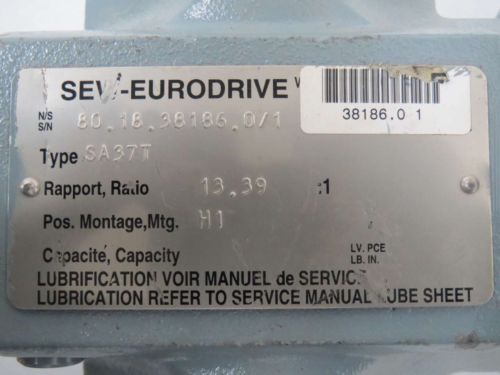 SEW EURODRIVE SA37 13.39 1/2HP 460V-AC 1700/127RPM 3PH GEAR MOTOR B369396