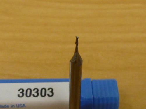 | “SGS Carbide End Mill, 2 Flt., 1/32" Dia., 5/64" LOC, 1.50" OAL, Mfg.# 30303, Surplus. Purchased these end mills for a project. Once the project ended, we had a surplus of these tools. These end mills are new and have not been used. The price listed is for one tool only and not for multiple tools.” |