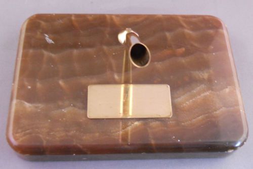 Sheaffer White Marble SIngle Ball Pen Desk Set-brown ball pen "Rotary Logo"