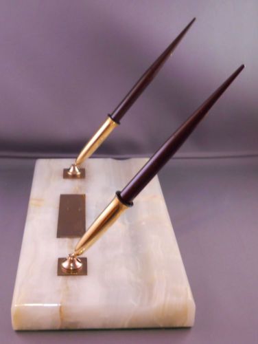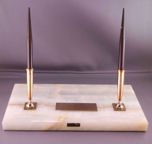 Vintage Beautiful Tan White Marble Advertisement Desk Pen Holder WLOA Am FM