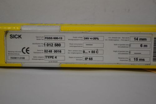SICK FGSE 600-13 14-FGS LIGHT CURTAIN RECEIVER 6M WIDTH 14MM MIN 24V-DC D304651