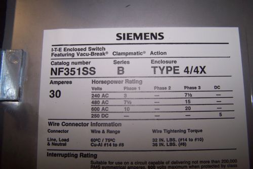 SIEMENS HF322N DISCONNECT 60 AMP 240 VOLT SAFETY SWITCH