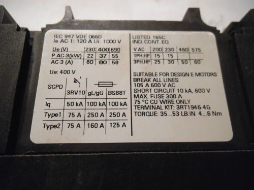 SIEMENS 3RT1035-1AF00 3 POLE CONTACTOR