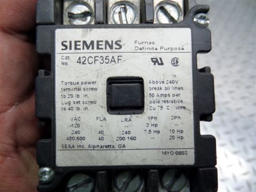 Call Us Today! 626.330.4647|info@1machinerysales.com SIEMENS CAT NO 42CF35AF FURNAS DEFINITE PURPOSE CONTACTOR SIEMENS CAT NO 42CF35AF FURNAS DEFINITE PURPOSE CONTACTOR COMES AS SHOWN IN PHOTOS WEIGHT: 1.2 LBS MEASURES: 4" x 2.5" x 3" Copyright 2014 1 Machinery Sales.com | All Rights Reserved Policies DESCRIPTIONS Please read descriptions carefully, we list any features, specifications and details we know and/or research. When possible we test the basic features If you don’t see the information you need or notice any discrepancies; Contact Us! We are here to answer all your questions regarding our eBay Listings and our eBay Store. Don't assume items come with any accessories not shown in pictures. All items come as shown in pictures. PAYMENTS We accept Visa, MasterCard and Discover via PayPal. Payments are expected within 3 days after the close of the auction. An eBay Non-Paying Bidder Notification will be filed if payment has not been received. After 10 business days of non-payment item will be relisted and no payment from previous transaction will be accepted. Sales Tax is calculated on the final auction cost plus shipping charges and must be paid prior to shipment. STORAGE We offer storage services from small items to full containers. We also offer container loading, Contact us for prices. For buyers bidding on, or buying multiple items, we will hold them for up to 7 days at no charge, after 7 days fees may apply. Contact us when you are planning to bid on multiple items across multiple days. We offer two kinds of storage fees: Inside: $ 2.50 per sq. foot Outside: $ 2.00 per sq. foot FEEDBACK Positive feedback will be left after payment has been received. If after receiving your item, you have concerns, questions or the item is not what you expected please Contact Us! We want to make your transaction a pleasant experience. Don’t leave Negative or Neutral feedback before doing it. We are professionals and we are here to help you. RETURNS We accept returns for all our items listed as working. Items listed in “AS IS” condition or “For Parts or Repair” have no warranty, read our descriptions carefully. We give 14 days to Contact Us and return the item. Refund can be process in the form of exchange, merchandise, store credit or money back. Buyer is responsible to ship the item back to us; we will be responsible to ship the exchange back. Any modifications made to the item not authorized by 1 Machinery Sales, will void any warranty. SHIPPING For combined shipping items should meet the following criteria: Combined items should fit in any of the flat Rate Boxes offered by USPS. All items must be paid at same time for the same invoice. All items should be shipped to the same address. Carriers: USPS flat Rate, FedEx Ground & UPS Ground. For International: USPS Priority Intl. Please note UPS & Fedex charge extra for residential delivery. Please call us before 1PM PST if you need expedited services *Additional cost will apply* HANDLING FEES Fees will apply as follow: Weight Charges 1 to 6 lbs. $ 3.50 7 to 20 lbs. $ 4.50 21 to 35 lbs. $ 7.00 36 to 80 lbs. $ 9.00 Handling fees are subject to change if item(s) are oversized. LOCAL PICK UP Please call to schedule a time & day for pick up. When picking up have your paperwork ready (eBay Invoice and eBay ID) and a valid ID ready. For inspection please call ahead. We are located at: 14911 Don Julian Rd. City of Injdustry, California, 91746 Phone number 626.330.4647 Monday to Friday from 10:00 am to 2:00 pm, please wait in the front office a person will be asigned to you. Payment must be cleared before picking up your item. Liability Please understand that managing tools and machinery can be dangerous, our items weight can go from a couple of pounds to hundreds or even thousands. For this reason we have to limit local pick-ups to the use of forklift on items heavier than 100 lbs. If our customers bring help along to load their items, customer will have to sign a General Form of Release of Liability or bring their own insurance. Please note that a $25.00 loading fee will apply if Forklift Services required. Unless stated in the listing above. FREIGHT Freight charges on the invoice will be from FedEx Freight. If you do not wish to use FedEx Freight services please contact us at info@1machinerysales.com. For Nevada, Arizona and California we use LA Machinery Moving, click here for an online quote or call us 626.330.4647 Items that require a standard 4’x4’ pallet will have a $25.00 fee. Please call for pricing on items that require custom skid or custom crating. We encourage our customers to arrange their own shipping on items that cannot be shipped through FedEx ground (items over 150 Lbs.) A $25.00 Loading fee will apply unless stated in the listing. If you're arranging your own freight please have a completed bill of lading to info@1machinerysales.com before sending a truck. ITEMS OVER $15,000.00 Prior to placing a bid of $15,000.00 or more buyer requires verification of payment status which could be credit card or any other alternative means. Click here for more information. CLAIMS In the event that your item gets damaged during shipment please following the steps below. Damaged packages. 1) Keep all original packing together as the carrier may require it to process the claim. 2) Take clear photos of the box & item showing the damage. 3) Send all photos to us via eBay messages & provide a short description on what is broken. Damaged pallets. If your shipment shows visible signs of damage, immediately ask the driver to inspect the contents with you. Then write a precise description of the damage on both your copy and the driver’s copy of the delivery receipt. 1) Keep all original packing together as the carrier may require it to process the claim. 2) Take clear photos of the pallet/item before offloading. 3) Send all photos to us via eBay messages & provide a short description on what is broken. Once all that information is received we w