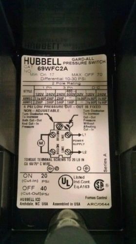 NEW Furnas 69WRS Reverse Action Pressure Switch 1/4" NPTF Cut in 10 Out 5 69WR5