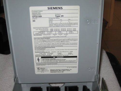 RX-1861, SIEMENS HF361 HEAVY DUTY SAFETY SWITCH W/ FUSES. 30 AMP MAX. 600 VAC.