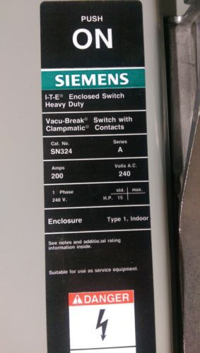 | MPN | SIEMENS HEAVEY DUTY ENCLOSED SWITCH SN324 200 AMPS |