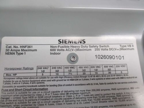 SIEMENS GNF321 30A 240VAC Disconnect Switch