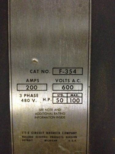 ITE Vacu-Break 400A Main Panelboard Switch VMS325B with mounting straps